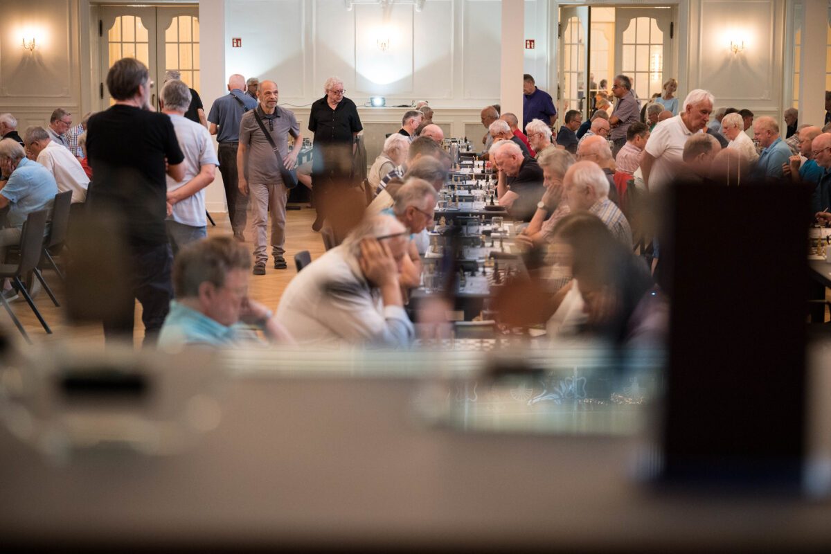 Die deutsche Meisterschaft der Schachsenioren war eines der ersten Events im wieder hergestellten Kurhaus. Die älteren Senioren spielten im größeren Kursaal und die jüngere Altersklasse trat im Barocksaal an. Es ging weniger um Preisgeld, sondern vor allem um das Verewigen des eigenen Namens auf der Quadriga, das ist der Wanderpokal, der aber nicht weitergereicht wird.