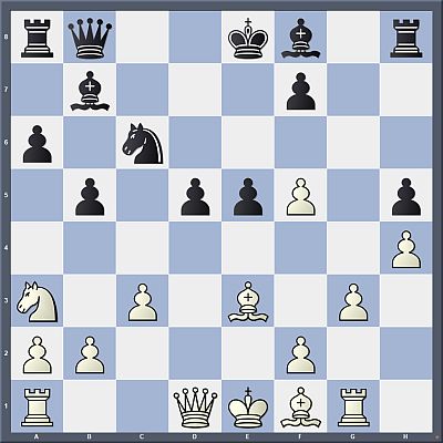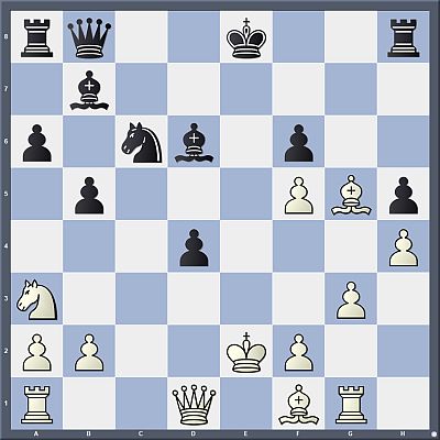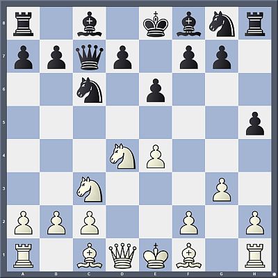 Das Spiel ist ganz im Geiste von Sweschnikow. Weiß stellt sicher, dass das Feld d5 für seinen Springer verfügbar ist, aber Schwarz bekommt seine eigene Aktivität.