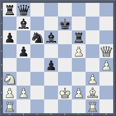 34.Dh8 De5 35.Lf3 Df5 Dies ist zweifelsohne eine meiner besten Partien.