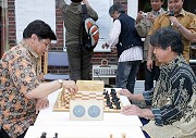 Sommerturniers am Brett gegen den Vorjahressieger, Lomo Napitupulu (r.)