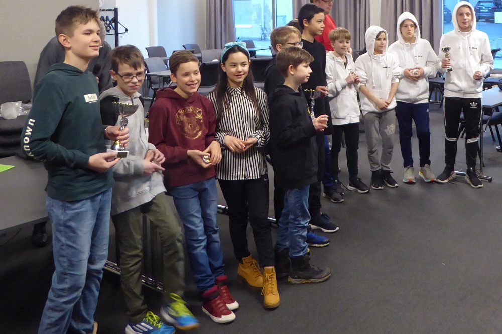 Am U14-Turnier nahmen 23 Mannschaften teil und es war spannend bis zur letzten Partie. OSSU, der Favorit aus Oslo, hatte bis zur letzten Runde nur ein Unentschieden abgegeben (2:2 gegen Smeaheia), verlor aber in der Schlussrunde gegen Nordstrand, eine andere Osloer Mannschaft. Dadurch gewann Grenland auch diese Meisterschaft mit einem halben Brettpunkt vor Nordstrand, beide mit 10:2 Mannschaftspunkten. Dritter wurde OSSU mit 9:3 Punkten und dem Brettbesten am 1. Brett: Axel Tunsjø (6 aus 6). Es folgten fünf Mannschaften mit 8:4 Punkten, unter ihnen auch die von mir betreute Mannschaft Fredrikstads, die mit 15 Brettpunkten einen sehr guten 5. Platz belegte.