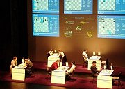 02.08.2006 – Die gestrige dritte Runde des Dortmunder Sparkassen Chess Meetings brachte erneut keine Entscheidungen. Alle vier Partien des GM-Turniers endeten ohne Sieger, ebenso die dritte Partie des Wettkampfes zwischen Irina Krush und Elisabeth Pähtz. Im GM-Turnier stand zweimal die Katalanische Eröffnung - sonst auf Topturnieren eher selten zu sehen - auf dem Programm. Ein spannendes und eröffnungstheoretisch bedeutendes Gefecht lieferten sich dabei Vladimir Kramnik (mit Weiß) und Arkadij Naiditsch. Heute muss der Titelverteidiger mit den schwarzen Steinen gegen den Weltranglistendritten Levon Aronian antreten. In der Sprache der Fußballbundesliga hieße das: Berlin gegen Dortmund (ab 15 Uhr, live auf der Turnerseite und im Fritzserver). Turnierseite...Tabelle, Partien...