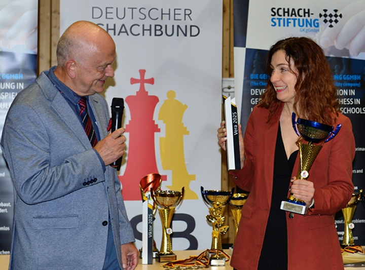 Den Ehrenpreis „Vera“ überreiche ich WGM Olga Babiy und wünsche noch viele schachliche Erfolge!