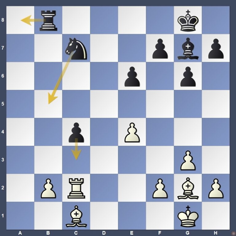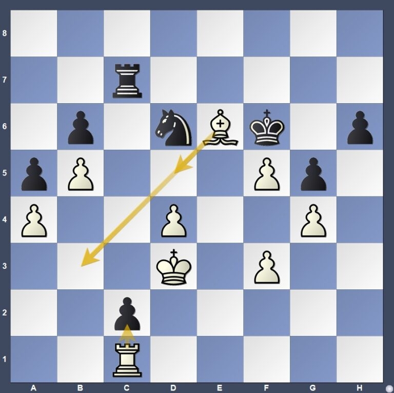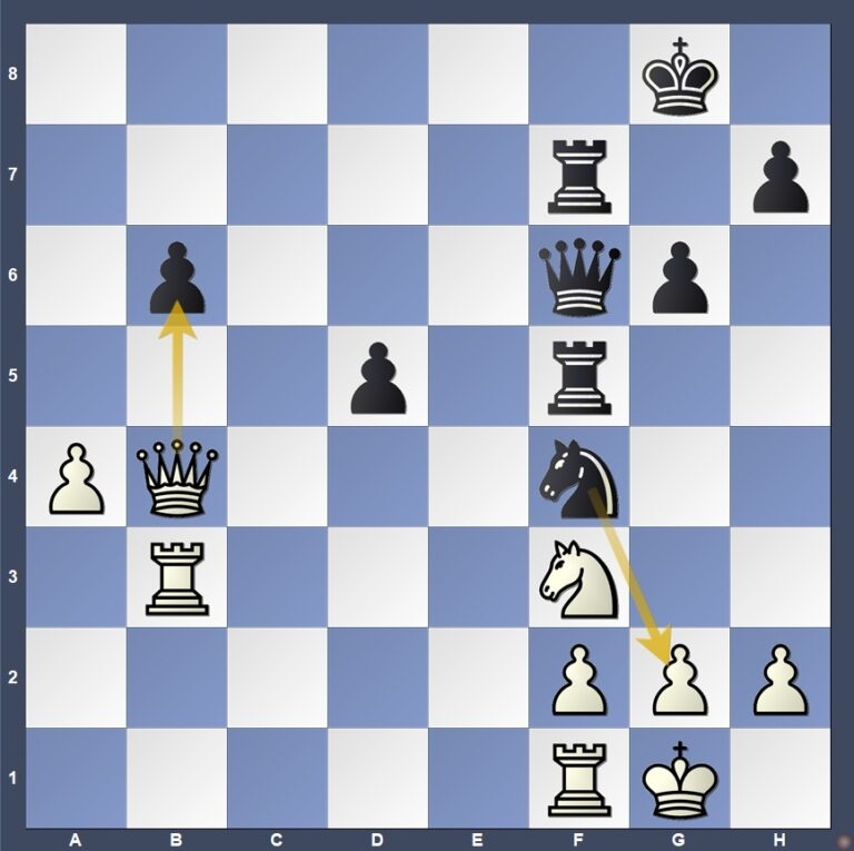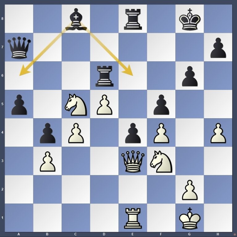 Der Gewinnzug ist paradox: 31…Be6!!, wodurch sein Läufer unter doppelten Angriff gerät. Die Idee hinter diesem fantastischen Zug ist es, die Damen zu tauschen und dank der Idee a5-a4 in ein gewinnbringendes Endspiel überzugehen. Überraschenderweise hat Weiß keine ausreichende Verteidigung. Aber man kann ihm kaum vorwerfen, dass er eine Ressource übersehen hat, die nur Engines erkennen konnten.