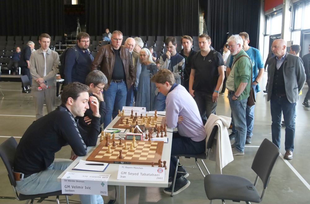 So wurde die OSG Baden-Baden zum einzigen ernsthaften Konkurrenten im Kampf um den Meistertitel für den Düsseldorfer SK. In Runde fünf hatte sich Viernheim aber ausgerechnet im Kampf gegen den Rekordmeister gefangen, gewann den Vergleich und reduzierte die Meisterchancen für die Badener. Das vorentscheidende Finalmatch fand so schon in der siebten Runde zwischen Düsseldorf und Baden-Baden statt, begleitet von Wehklagen der Rheinländer, die wegen eines anderen Turniers auf eine ganze Reihe von Spitzenspielern verzichten mussten. Ein paar ganz gute Leute, z.B. Nepomniachtchi, So, Vidit, Sindarov oder Esipenko, konnte man aber doch noch ans Brett bringen und so reichte es zu einem "knappen" 5,5:2,5 Sieg. Das Pflichtprogramm war aus Düsseldorfer Sicht erfüllt.