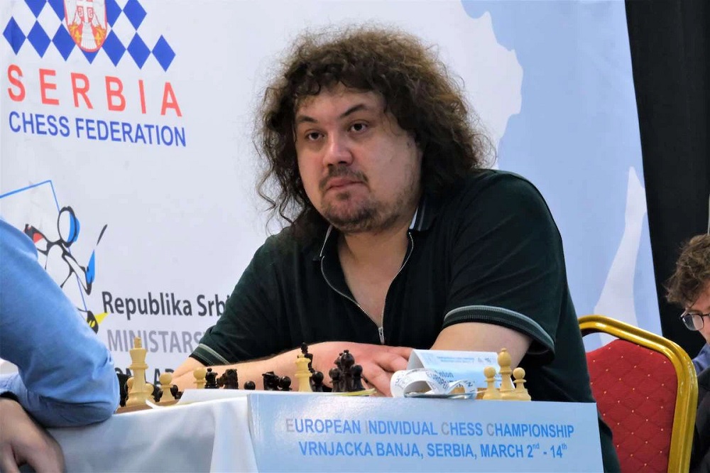 09.03.2023 – Die am Mittwoch gespielte 6. Runde der Einzeleuropameisterschaft in Vrnjačka Banja hat bei dem elfrundigen Turnier die Halbzeit markiert. Nach dieser Runde führen zwei Spieler mit einem Score von jeweils 5,5/6 gemeinsam die Tabelle an: der ukrainische Großmeister Anton Korobov und der hierzulande weniger bekannte griechische IM Stamatis Kourkoulos-Arditis (Foto). In der achtköpfigen ersten Verfolgergruppe (alle 5,0/6) befindet sich mit Frederik Svane auch ein Deutscher. Svane hat den Kroaten Ivan Saric bezwungen, der den Titel eines Europameisters im Jahr 2018 schon einmal gewonnen hatte. | Fotos: European Chess Union