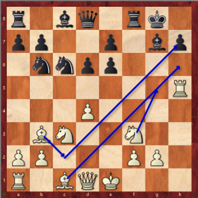 Obwohl Schwarz sehr natürlich gespielt hat, konnte Weiß schnell einen Angriff initiieren und es zeigen alle Figuren auf den schwachen König! Ein weiteres Beispiel für die Figurenaktivität der Allapin-Variante.