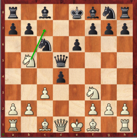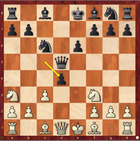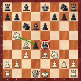 Weiß sieht sich nicht gezwungen den Bauern auf d4 zurückzuschlagen und droht stattdessen eine Familiengabel auf c7.