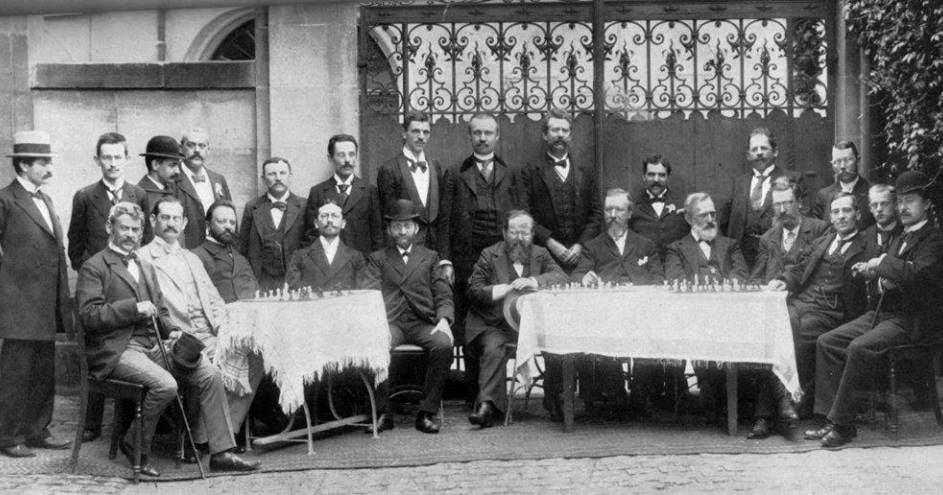 Von links nach rechts, 1. Reihe: A. Albin (Rumänien), M. Porges (Österreich-Ungarn), M. Tschigorin (Russland), S. Tarrasch (Deutschland), S. Winawer (Russland), W. Steinitz (Österreich-Ungarn), J. Blackburne (Großbritannien), E. Schallopp (Deutschland), E. Schiffers (Russland), H. Pillsbury (USA), K. Walbrodt (Deutschland), R. Teichmann (Deutschland).