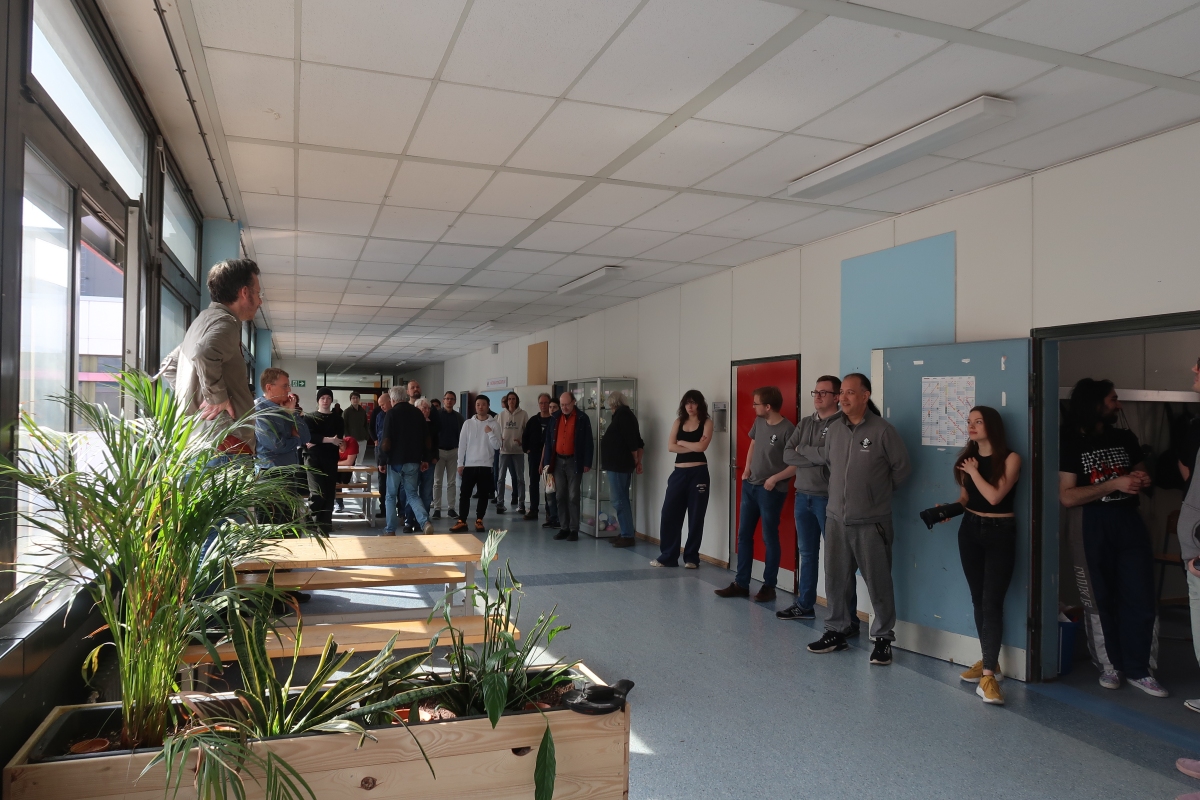 Am Sonntag stand dann wieder die geräumige Mensa zur Verfügung. Organisiert wird die Veranstaltung vom Hamburger Schachverband, was sich "groß" anhört. Aber letztlich sind es immer und überall nur einige wenige aktive Ehrenamtliche, die dafür sorgen, dass der Laden läuft. Wenn die Spieler kurz vor Rundenbeginn eintreffen, ist alles wie von Zauberhand schon vorbereitet. Die benötigte Anzahl von Tischen und Stühlen stehen bereit. Es gibt einen Getränkestand. Die Figuren stehen alle schon auf den richtigen Feldern und die Digitaluhren sind korrekt eingestellt. Bei zehn Mannschaften in dieser Klasse gibt es fünf Wettkämpfe mit je acht Brettern - 40 Bretter mussten also aus den Depots geholt und dann aufgebaut werden. Wenn man schnell und geübt ist, braucht man für ein Brett sicher nur ein oder zwei Minuten. Das sind bei 40 Brettern dann...