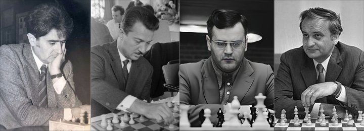 Von links nach rechts: Aleksandar Matanović, Svetozar Gligorić, Milan Matulović und Borislav Ivkov | Fotos: Chess Informant Archiv