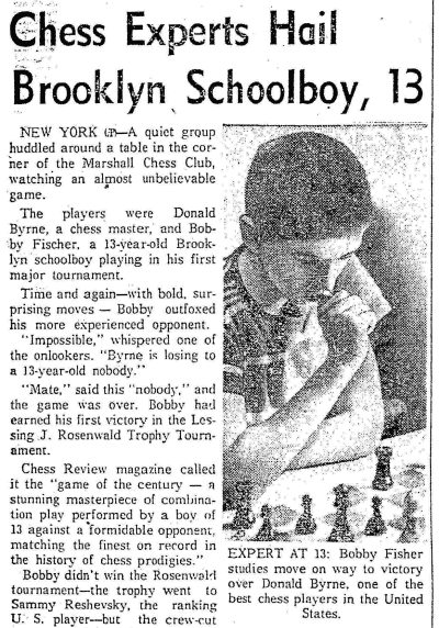 Robert und Donald Byrne spielten neben Schach auch regelmäßig Tennis im Central Park und kamen auf dem Rückweg vom Tennis an den Schachtischen am Rande des Parks vorbei. Die recht spielstarken Schachzocker dort glaubten, mit den weiß gekleideten Tennis-Bubies im Teeniealter leichtes Spiel zu haben, wunderten sich dann aber, dass sie im Spiel um Geld ohne Chance waren.