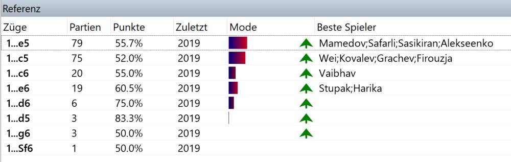 In Moskau setzte sich in der A-Gruppe (500 Partien) der Trend fort: Der Zug des Königsbauern ist bei den Profis wieder angesagt (in über 40 Prozent der Partien). Als häufigste Antwort stellte sich diesmal Schwarz mit seinem Königsbauern im Doppelschritt dagegen. Der häufigste offene Sizilianer war die Najdorf-Spielweise, die den Schwarzspielern diesmal sogar ein leichtes Plus einbrachte. Andere Sizilianer fanden fast gar nicht statt. Beim B-Turnier (2550 bis 2300) war 1.d4 der Hauptzug, zumindest in den ersten vier Runden (252 Partien) – der Rest der Partien wurde zumindest laut Angaben bei „Chess-Results“ leider nicht erfasst.