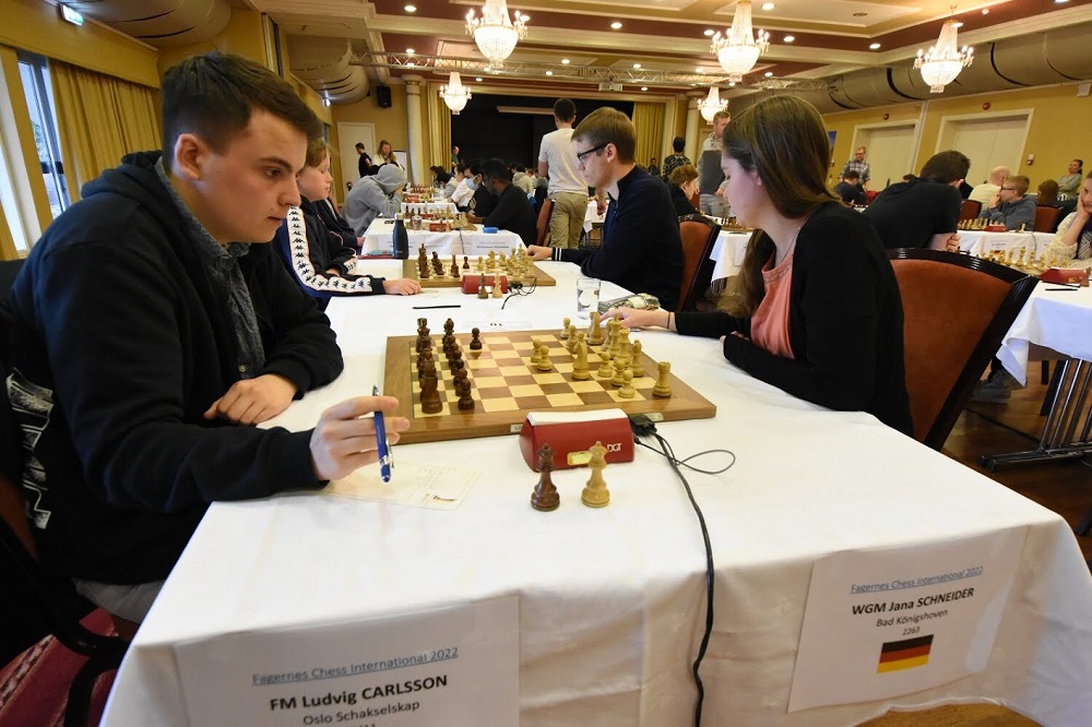 15.04.2022 – Nach der 6. Runde des Opens im norwegischen Fagernes hat sich an der Tabellenspitze eine aus elf Spielern bestehende Führungsgruppe gebildet, zu der mit Alexander Donchenko auch ein deutscher Großmeister gehört. Gegen den ukrainischen FM Semen Mitusov musste sich Donchenko am Donnerstag mit einem Remis begnügen - sonst wäre sogar die alleinige Führung für ihn drin gewesen. In der 7. Runde am Karfreitag muss sich Donchenko mit dem Türken Emre Can auseinandersetzen. Bis Ostersonntag wird in Fagernes noch gespielt (insgesamt neun Runden). | Fotos: Tom Eriksen