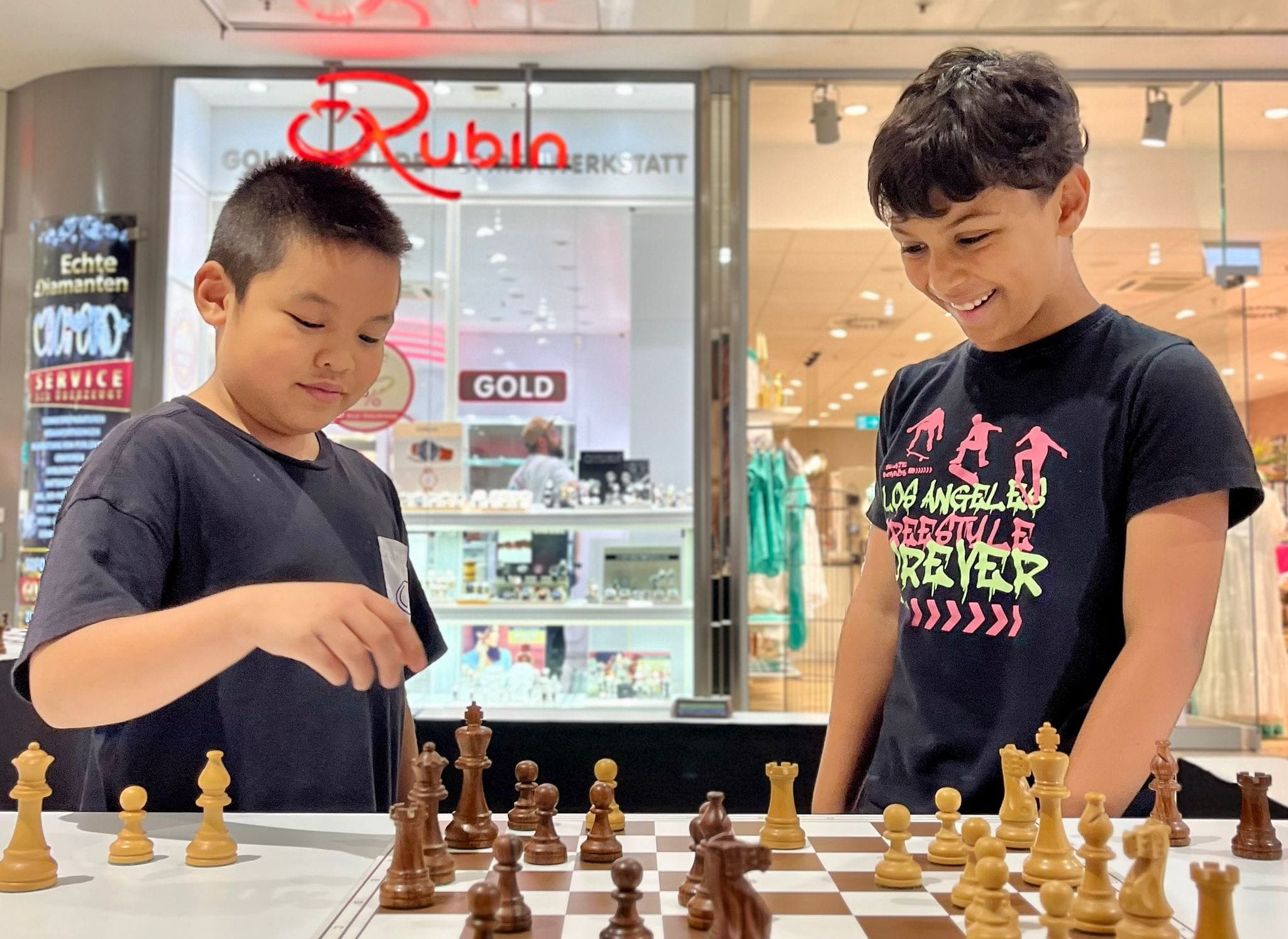 Mehr als 15 Kindergruppen und Schulklassen aus Aachen und Umgebung werden einen bunten Parcours im Erlebnisschach durchlaufen. Von 10.00 bis 15.00 Uhr wird das Einkaufszentrum in einen lebendigen Schachunterricht verwandelt. Nach der Einführung in das königliche Spiel ist Showtime angesagt.