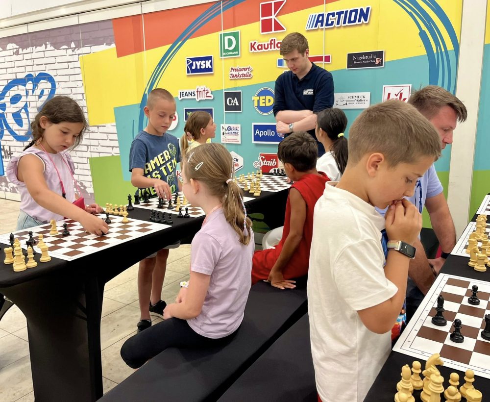 Von 10.00 bis 15.00 Uhr wird das Einkaufszentrum in einen lebendigen Schachunterricht verwandelt. Nach der Einführung in das königliche Spiel ist Showtime angesagt.