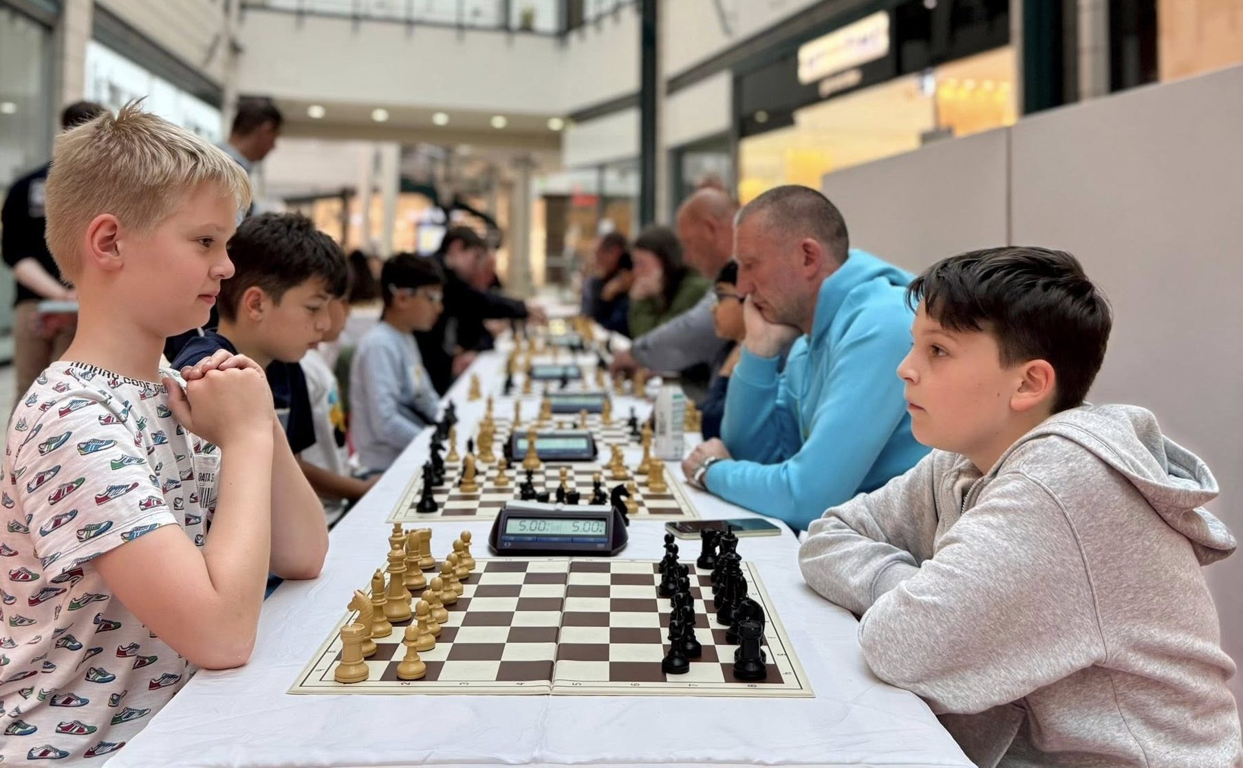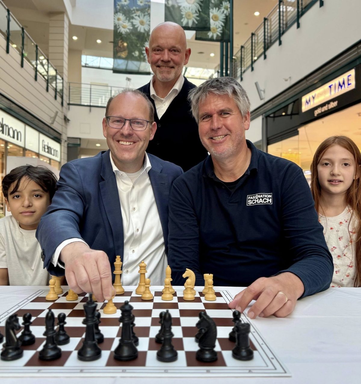 Das Alb-Donau-Center Ehingen ist zum ersten Male Ausrichter der beliebten Kinderschachinitiative. Oberbürgermeister Alexander Baumann hat die Schirmherrschaft übernommen. Bürgermeister Tobias Huber wird zusammen mit Centermanager Markus Scheurer und der ersten Schulklasse den Eröffnungszug am Montag, den 23.Juni 2025 um 10.00 Uhr ausführen.