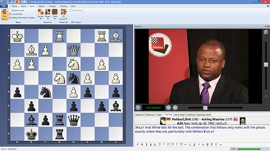 Im Laufe der DVD werden die Beispiele dann allmählich besser. Insbesondere wenn er seine eigenen Partien demonstriert, sprüht er nur so vor Witz, wie man es ja eigentlich von Ashley gewohnt ist. Die Partie Poldauf gegen Ashley ist wirklich großartig, es handelt sich um eine fantastisch tiefe Kombination, die er hier produziert, etwas für die Geschichtsbücher.