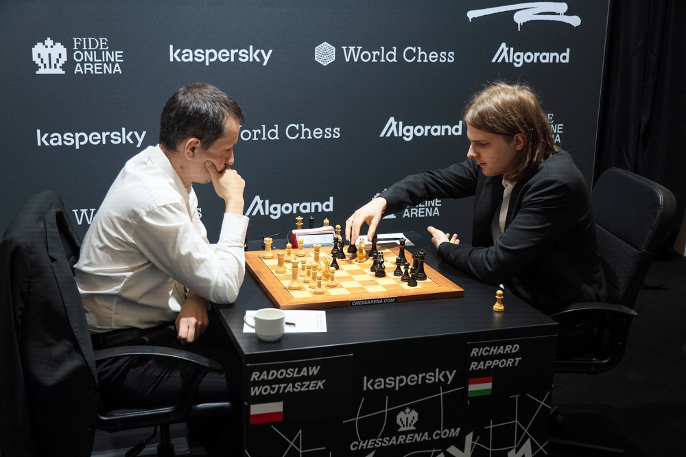 In der zweiten Partie im Pool B zwischen Radoslaw Wojtaszek und Richard Rapport opferte Rapport einen Bauern für Aktivität, was zunächst auch korrekt war - aber schließlich gewann Wojtaszek im Springerendspiel dank eben dieses Mehrbauern