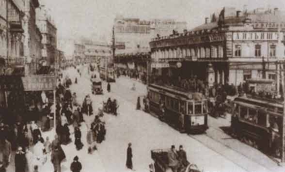 Das Warschauer Café (das große Gebäude rechts) in Kiev, 1910