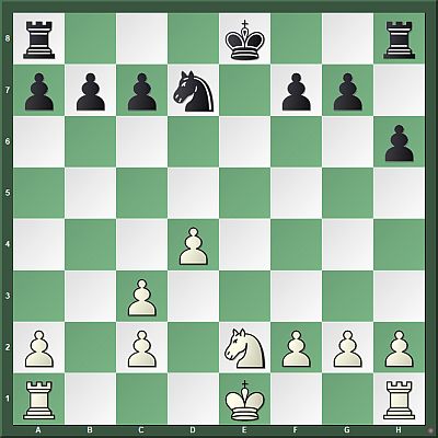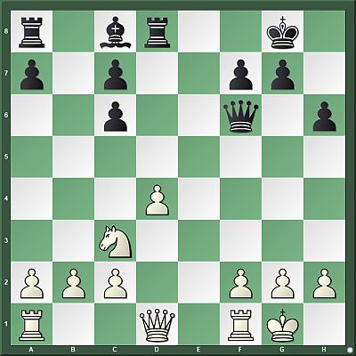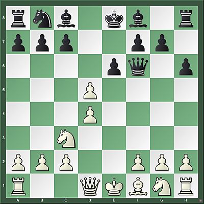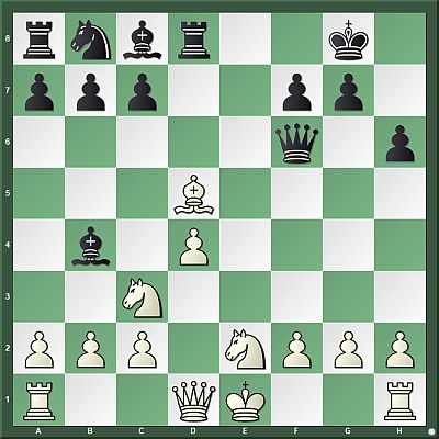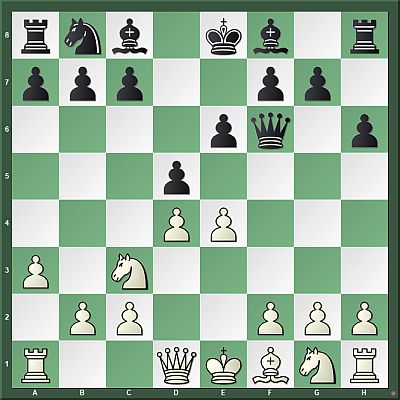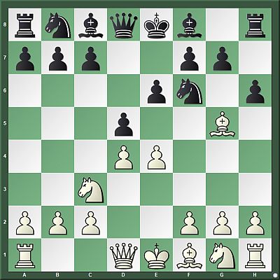 Weiß kann diese Stellung nach 4...h6 offensichtlich erzwingen, und Spieler "vor der Computerzeit" würden wahrscheinlich denken, dass Schwarz deutlich schlechter steht und um ein Remis kämpfen muss, was keinen großen Spaß macht. Und das ist ein wichtiger Punkt, der alle Systeme viel sinnvoller für Schwarz macht, denn laut modernen Engines ist diese Stellung ... einfach ausgeglichen! Die bessere Bauernstruktur und die aktiveren Figuren kompensieren das Bauerndefizit von Schwarz. 12...0-0-0 13.0-0-0 Sb6!. Der Springer besetzt einen perfekten Platz, bereit, nach a4, c4 oder d5 zu gehen, und Schwarz sollte sich alle diese Optionen so lange wie möglich offen halten! Siehe Guijarro,D - Bluebaum,M 1/2.