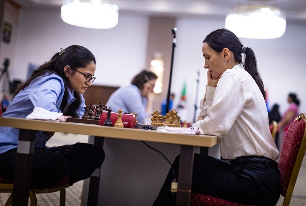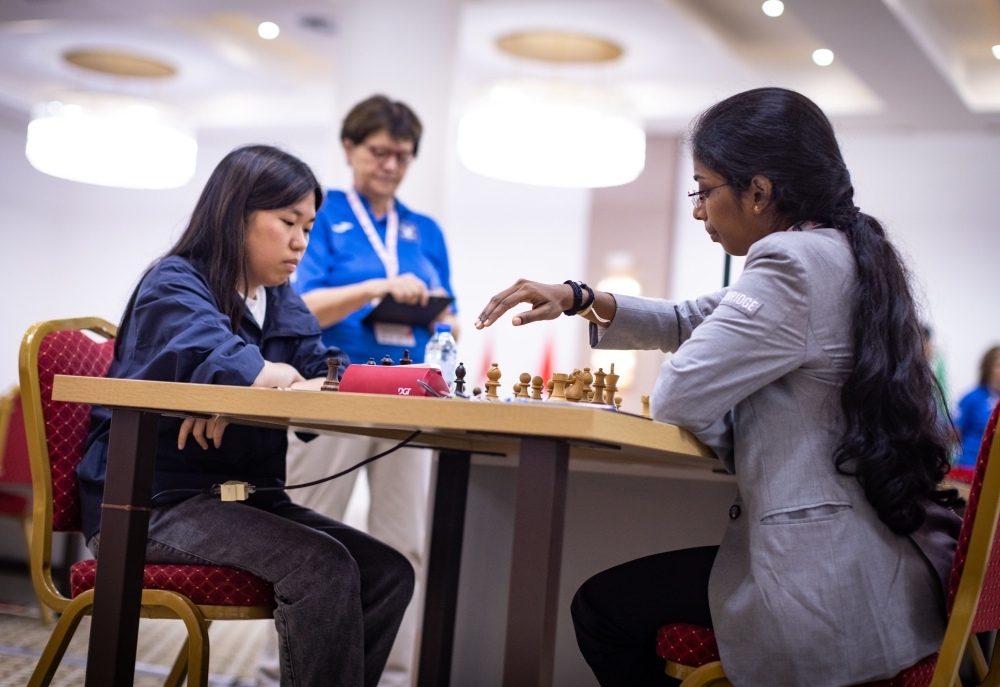 Spannend war der Vergleich der beiden jungen Spielerinnen Vaishali und Carissa Yip. Nach vier Remis bis dahin entschied die Inderin das Match mit zwei Siegen in der zweiten Schnellschachrunde für sich.