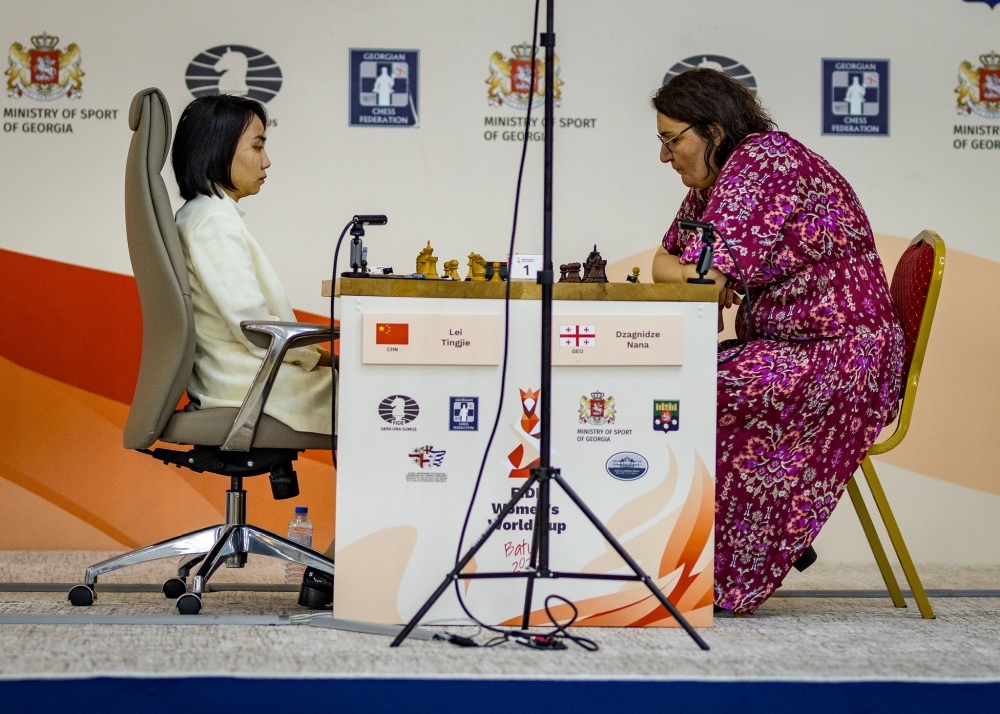 Der World Cup der Frauen in Batumi ist nun endgültig zum Schaulaufen der beiden "Großmächte" im Frauenschach, China und Indien, geworden, nachdem Lei Tingjie mit einem glatten 2:0 die letzte Spielerin eines anderen Landes, Nana Dzagnidze aus Georgien, aus dem Wettbewerb geworfen hat.
