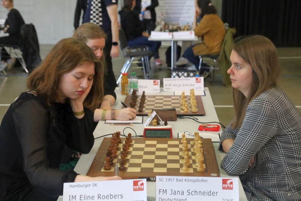 Die letzten drei Runden absolvierten die Frauenbundesliga zusammen mit der Bundesliga in Deggendorf. In den Runden 9 und 10 punkteten alle Spitzenvereine. In der letzten Runde trennten sich die Verfolger von Königshofen, Baden-Baden und Schwäbisch Hall mit 3:3 unentschieden. Königshofen stolperte in der Schlussrunde über das Team des HSK. Monika Socko, Sarah Papp und Lepu Coco Zhou holten volle Punkte für Hamburg. Jana Schneider lieferte sich mit Eline Roebers ein wildes taktisches Duell in einer Art Sizilanischen Drachenvariante und hatte das bessere Ende für sich.
