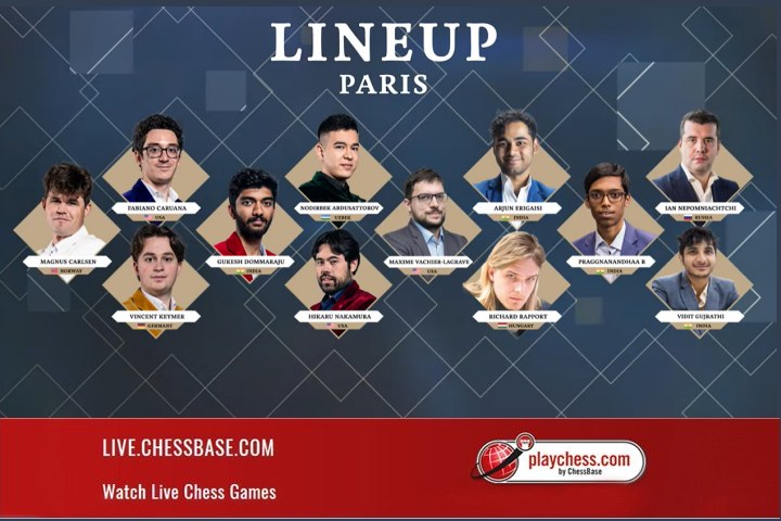 Das Freestyle Chess Grand Slam Turnier in Paris (7.-14. April) wird erstmals mit 12 Teilnehmern ausgetragen. An den ersten beiden Turniertagen wird ein Rundenturnier im Modus jeder gegen jeden im Schnellschach durchgeführt.