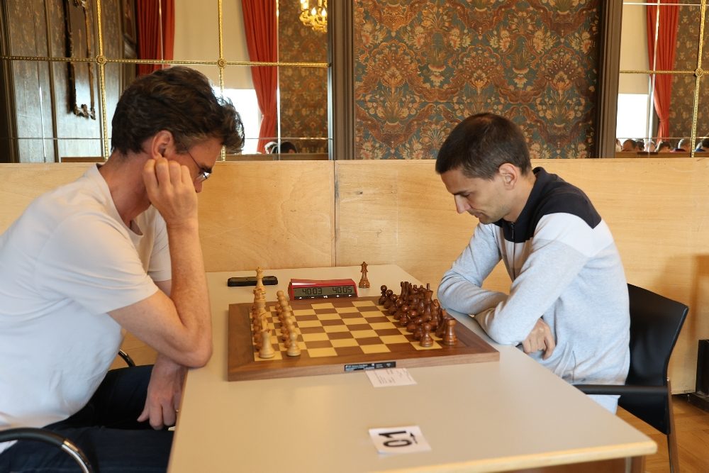 Die Großmeisterkollegen Loek van Wely, Daniel Fridman und Andrey Sumets gewannen ihre Partien und setzten sich – mit der wichtigen Zweitwertung im Blick (Fortschrittswertung/Punktsummenwertung) an die Tabellenspitze. Der gut in Form spielende IM Michael Hammes (SV Koblenz/de Sprenger Echternach) erreichte gegen GM Anthony Wirig ein Remis.