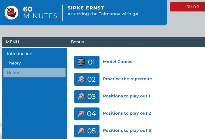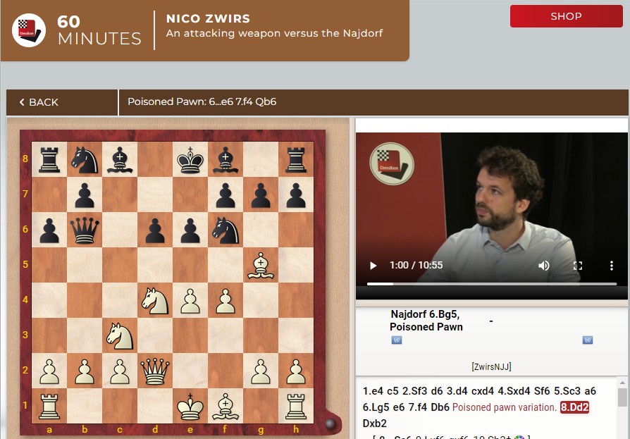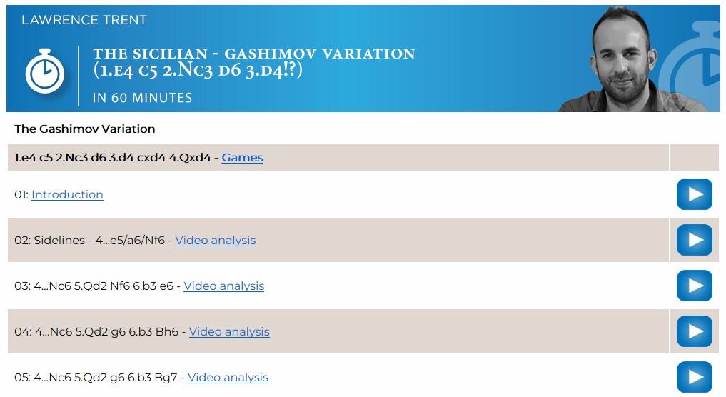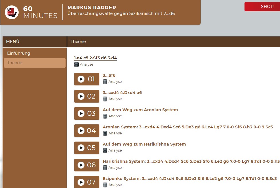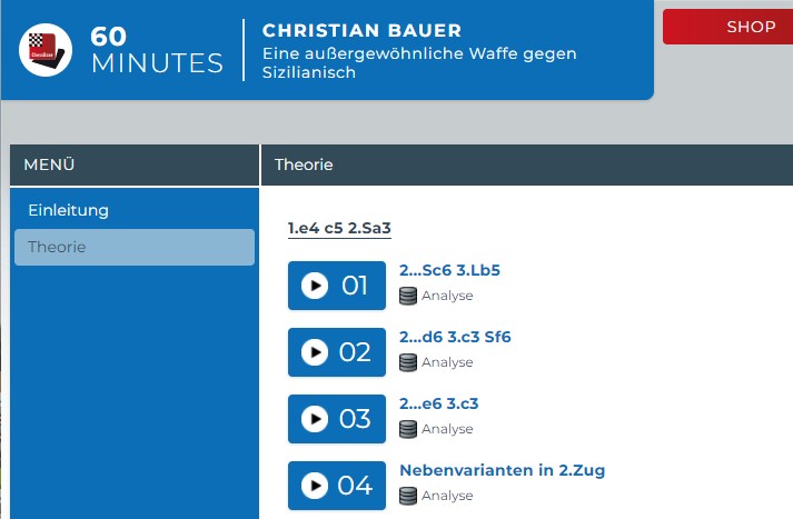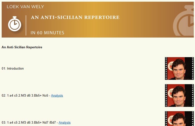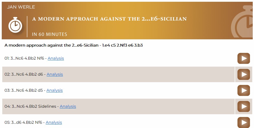 Kurz vor Fertigstellung dieses Beitrags wurde noch ein weiterer 60-Minuten-Kurs zu unserem Thema veröffentlicht, den ich Ihnen nicht vorenthalten möchte, auch weil er ein interessantes Repertoire gegen die sehr beliebte Najdorf-Variante vorstellt.