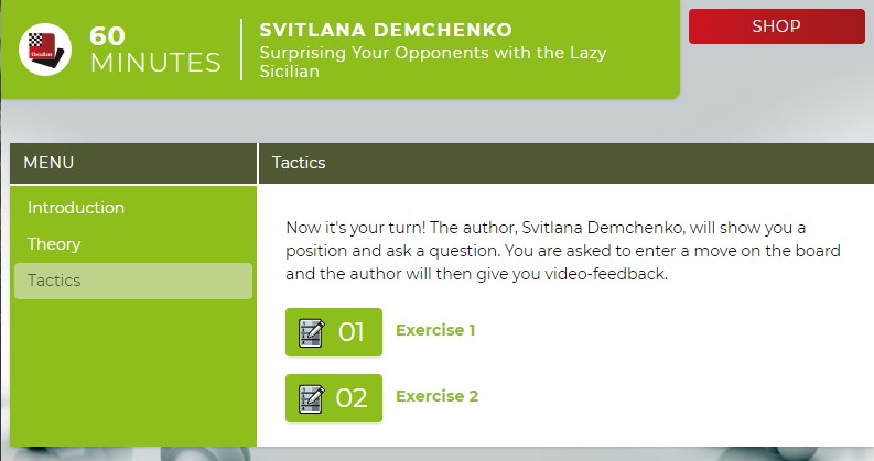 Mir gefällt hier, dass die Autorin neben der Theorie auch zwei Trainingsvideos im interaktiven Fritztrainer-Format anbietet, bei denen wir die erlernten Varianten und taktischen Fallstricke überprüfen können.