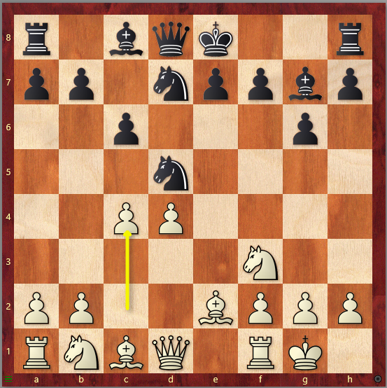 Ein paar logische Entwicklungszüge später hat Weiß eine sehr gute Kontrolle über das Zentrum. Der eigentlich wünschenswerte Bauernvorstoß 11.e5 wird Schwarz verwehrt. Außerdem verfügt Weiß über einen Raumvorteil, während Schwarz weiter damit kämpft, gute Felder für die Springer und den weißfeldrigen Läufer zu finden. Diese Stellung wird in dem Video zur Aljechin-Verteidigung noch ausführlicher erklärt und ein paar Züge tiefer analysiert.