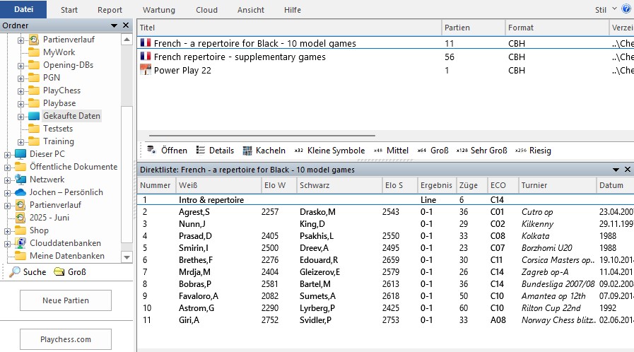 Französisch-Powerbase 2024 (Partien-Datenbank, teilweise kommentiert)