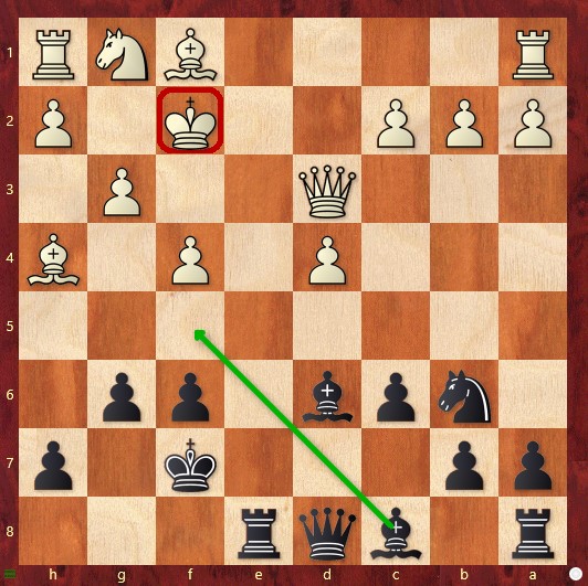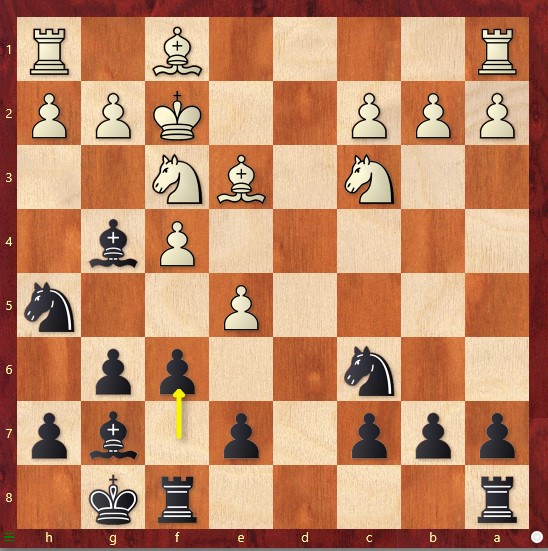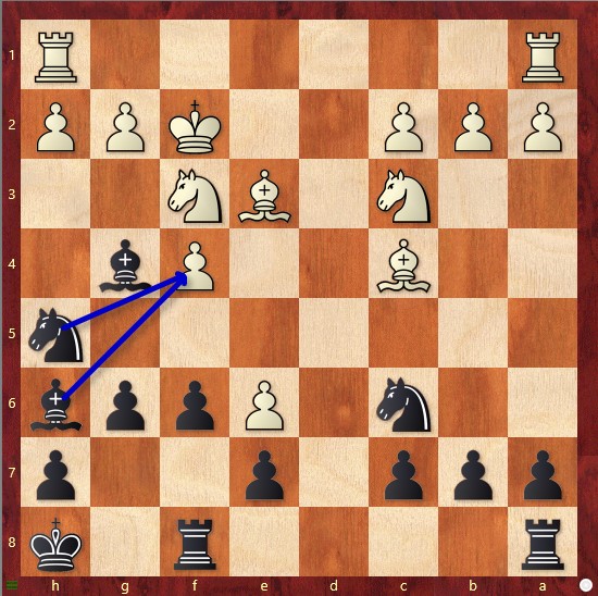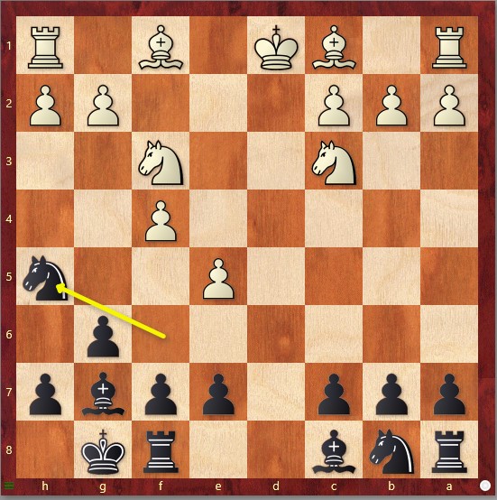 Nach gerade einmal acht Zügen sind die Damen getauscht, der Springer steht am Rand, und der Läufer auf g7 schaut auf Granit – eigentlich sieht es so aus, als müsste Schwarz passiv ein schlechteres Endspiel verteidigen. Doch in den nächsten Zügen erwachen alle schwarzen Figuren zum Leben: