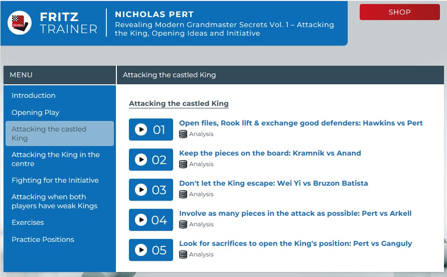 Ich war deshalb sehr gespannt auf seinen neuen Kurs „Revealing Modern Grandmaster Secrets“. Mit dem Titel konnte ich zunächst nicht so viel anfangen, aber als ich begann den Kurs durchzuarbeiten, wurde mir das Konzept klar. Es ist ein wunderbarer „wie verbessere ich meine Spielstärke“ Kurs, der viele wichtige Aspekte des modernen Schachs aus Sicht eines Großmeisters vermittelt.