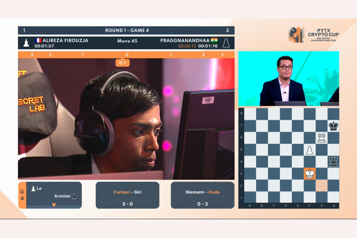 Weltmeister Magnus Carlsen spielte in der ersten Runde des FTX Crypto Cups gegen Anish Giri, und das verspricht immer eine unterhaltsame Begegnung zu werden, nicht zuletzt, weil sich die beiden schon so manchen unterhaltsamen Schlagabtausch auf Twitter geliefert haben.