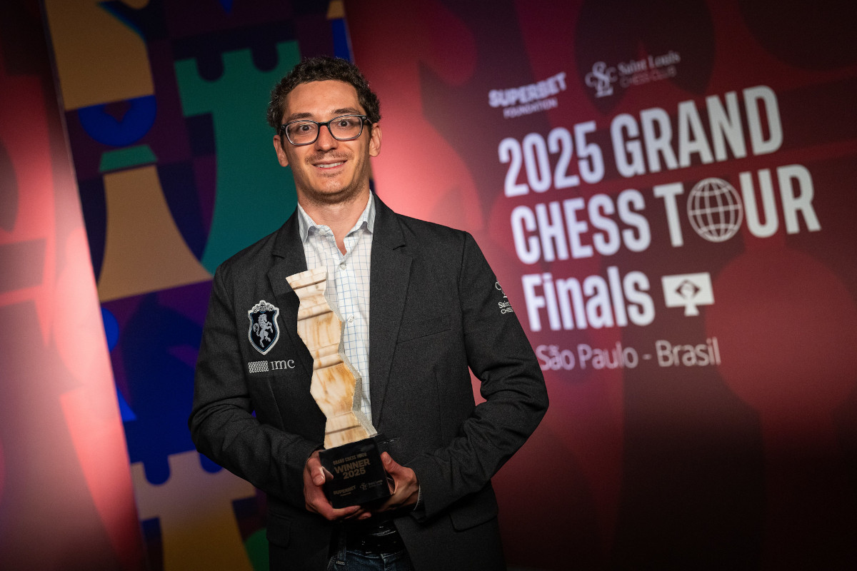 Der Sieger des Finales der Grand Chess Tour 2025 steht fest: Fabiano Caruana. Er setzte sich gegen Maxime Vachier-Lagrave in einem spannenden Match durch. Die beiden Super-Großmeister machten es sich gegenseitig nicht einfach bis Caruana im Blitzen als Sieger hervorkam. Er hatte sich von einem frühen Rückschlag im Schnellschach erholt und erzielte drei wichtige Siege im Blitzen, wodurch er sich den Turniersieg sicherte. MVL hatte die Chance auf eine Verlängerung zum Greifen nah, machte aber in einem entscheidenden Moment einen schwerwiegenden Fehler und erlaubte Caruana damit, das für ihn notwendige Remis mit einem Dauerschach zu erreichen. Ein Sieg durch MVL hätte dafür gesorgt, dass es noch zu einem weiteren Entscheidungsduell gekommen wäre.