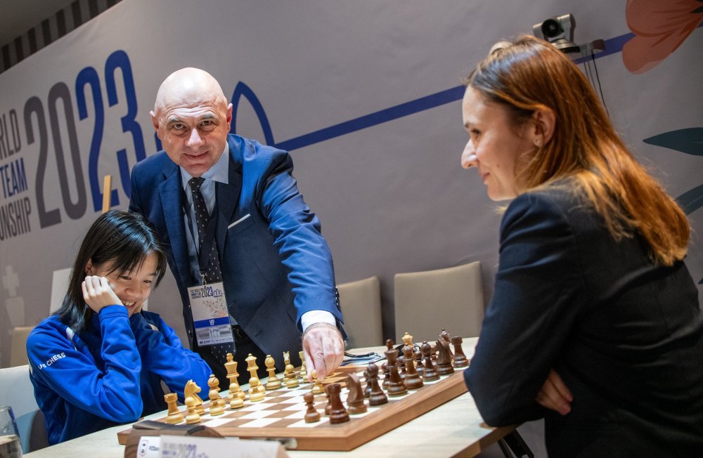 Georgien gewinnt bei der Mannschaftsweltmeisterschaft der Frauen 2023 Gold. Schon 2015 hatte das gleiche georgische Team mit Bella Khotenashvili, Meri Arabidze, Nino Batsiashvili, Lela Javakhishvili und Salome Melia, damals noch in einem anderen Format, diesen Wettbewerb gewonnen. Silber geht an Kasachstan, mit 18 Jahren im Schnitt das jüngste Team.