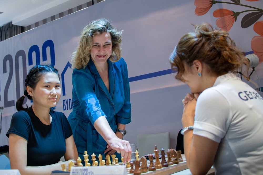 Der erste Umgang der Finalkämpfe wurde Dana Reizniece Ozola, der Vorsitzenden des FIDE Management Board, und von Akaki_Iashvili, dem Direktor für Sonderaufgaben der FIDE und Präsidenten des georgischen Schachverbandes, eröffnet.
