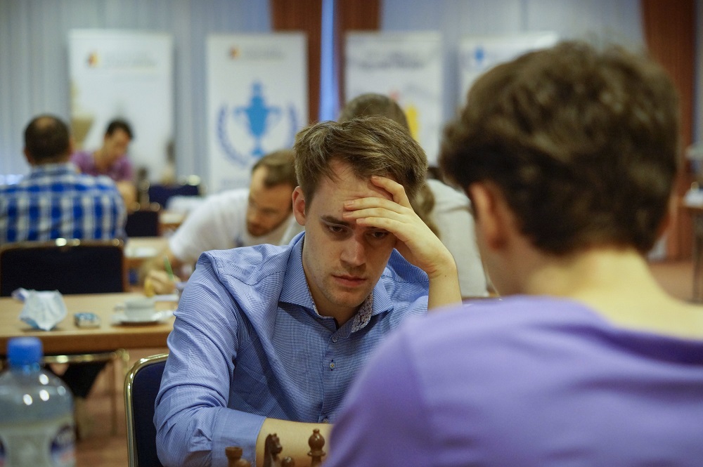 Die Partie zwischen Dmitrij Kollars und Niclas Huschenbeth war eine endlose Pflichtübung. Huschenbeth leistete sich mit seinen 2T+B gegen Kollars Dame aber keinen Fehler, und so konnte er schließlich, als alle anderen längst Feierabend gemacht hatten, trotz tapferster Gegenwehr seines Gegners den vollen Punkt für sich verbuchen: