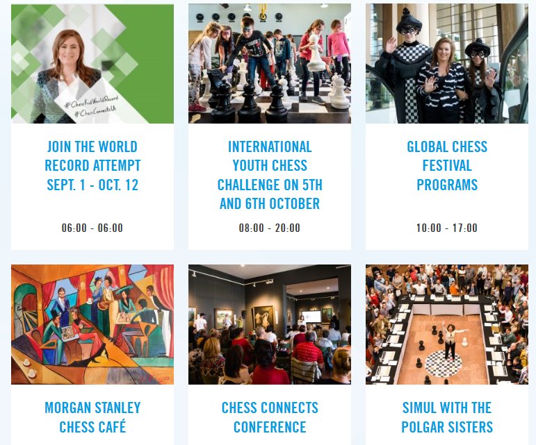 Zu den Aktivitäten des Festivals gehört ein Rekordversuch für das Guinness Buch der Rekorde. In einem großen weltweiten Online-Turnier sollen 20.000 Schachfreunde zusammen gebracht werden.
