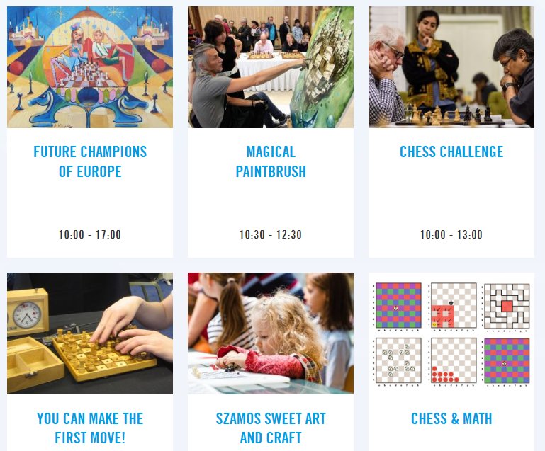 Darüber hinaus gibt es zahlreiche Angebote, die sich vor allem an Kinder richten, nicht zuletzt ein Jugendturnier. Erwachsene Schachspieler können an einem Schach Open teilnehmen.
