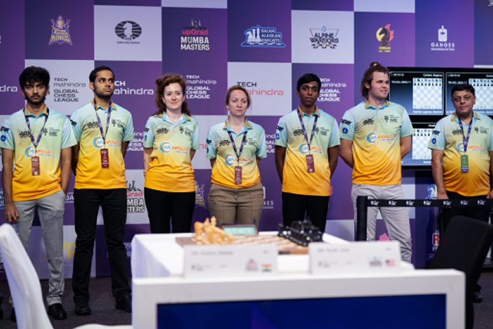 Am Sonntag spielten die Gebirgsjäger (Alpine Warriors) gegen die aufgewerteten Mumbai Meister (Upgrad mumba masters). Bei der Global Chess League spielen alle Spieler einer Mannschaft einen Wettkampf mit der gleichen Farbe. Das ist nicht schlecht und ist möglich, wenn man doppelrundig spielt, in der Rückrunde dann mit der anderen Farbe. Die Mumbai Master führten die weißen Steine, am Spitzenbrett Maxime Vachier-Lagrave gegen Magnus Carlsen. Der Norweger verteidigte sich mit der Spanischen Berliner Verteidigung. Lange blieb die Partie ausgeglichen. Doch dann...