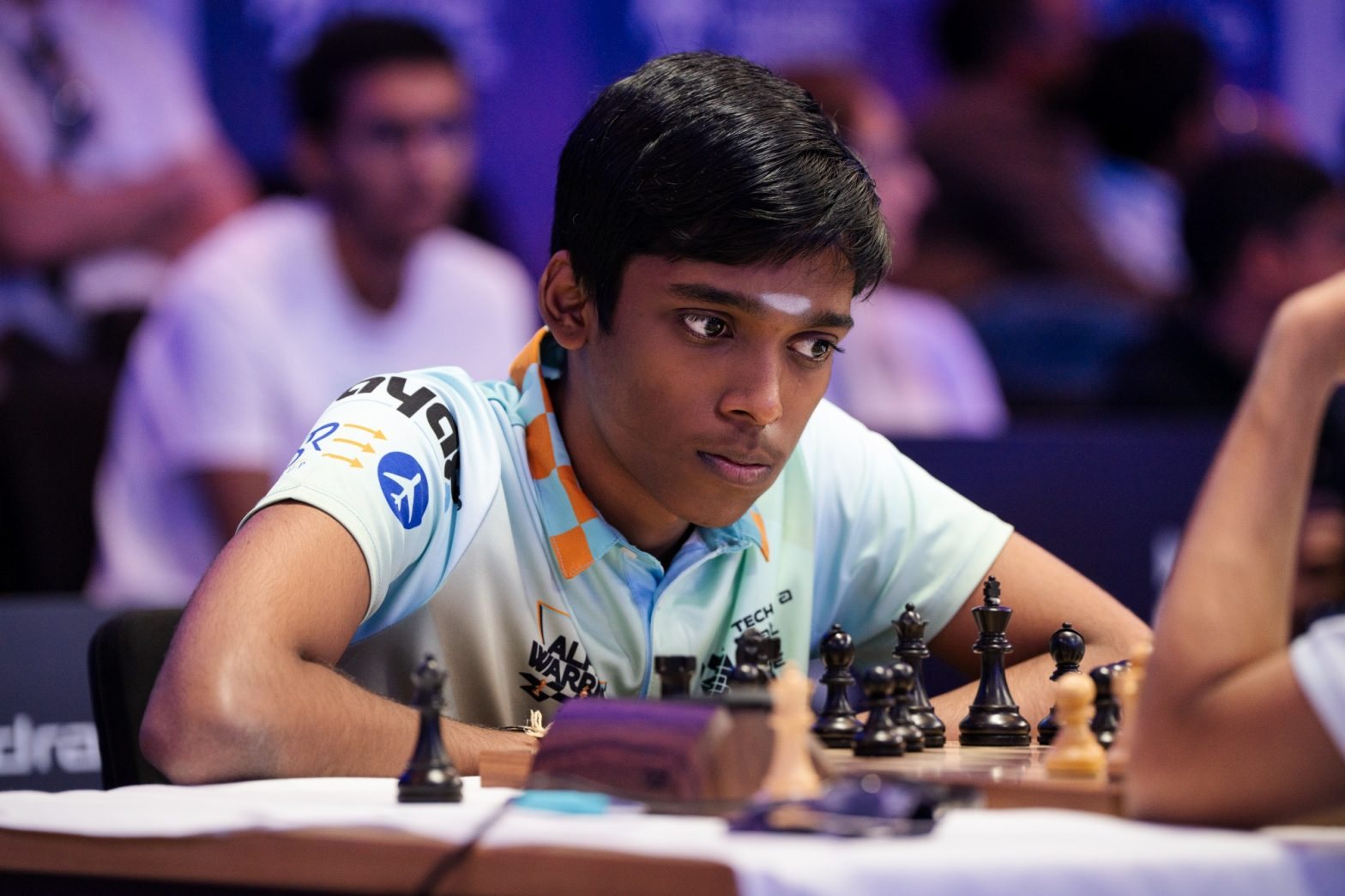 Der französische Mumbai Meister hatte sein Team gegen den Weltranglistenersten also in Führung gebracht. Doch es reichte nicht. Die Mittelbretter fanden alle keinen Sieger ("1:1"), aber am sechsten Brett gewann Praggnanandhaa mit den schwarzen Steinen gegen Savokhir Sindarov.