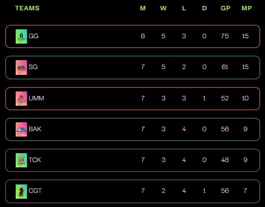 Damit haben sich die Ganges Grandmasters mit 15/24 Punkten wieder an der Tabellenspitze gesetzt.
