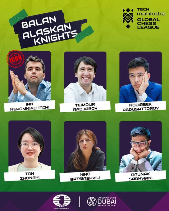 Die Teams haben malerische Namen und die Besetzung ist exquisit. Mit Ding Liren, Magnus Carlsen, Viswanthan Anand, Tan Zhongyi, Alexandra Kosteniuk und Yifan Hou sind drei Weltmeister und drei Weltmeisterinnen am Start. Die deutschen Farben vertritt Elisabeth Pähtz, die zusammen mit Carlsen, Gukesh, Erigaisi und Praggnanandhaa bei den Alpine Warriors spielt. Die zweite Frau im Team ist Irina Krush.