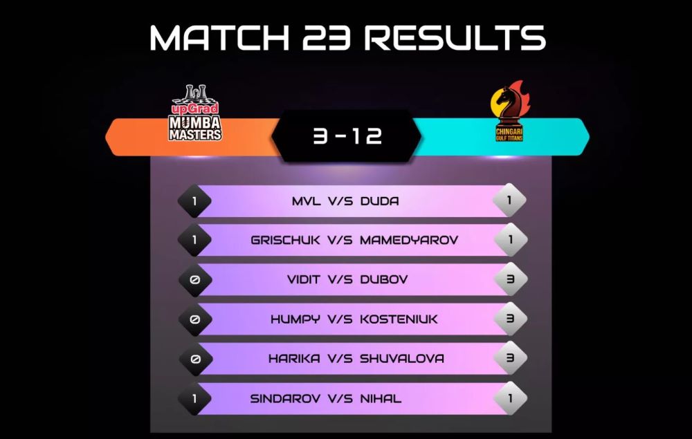 Ganges Grandmasters gegen upGrad Mumba Masters