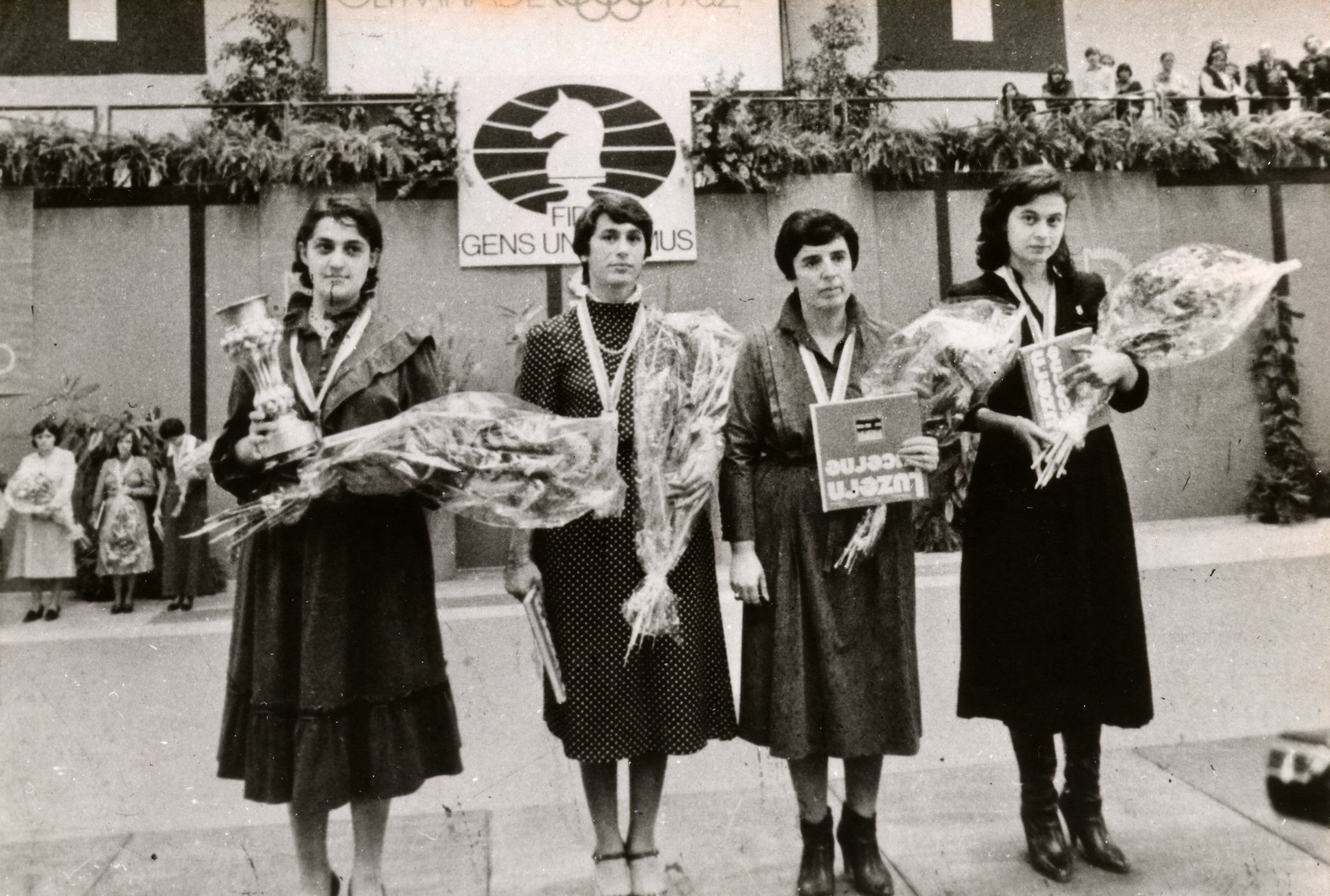 Archivaufnahmen wie diese bietet „Glory to the Queen“ reichlich. Die glorreiche Zeit des georgischen Frauenschachs liegt auch schon einige Jahrzehnte zurück. Ihr größter Moment war die Schacholympiade 1982 in Luzern, als Nona Gaprindashvili, Maia Chiburdanidze, Nona Alexandria und Nana Ioseliani Gold für die Sowjetunion gewannen.