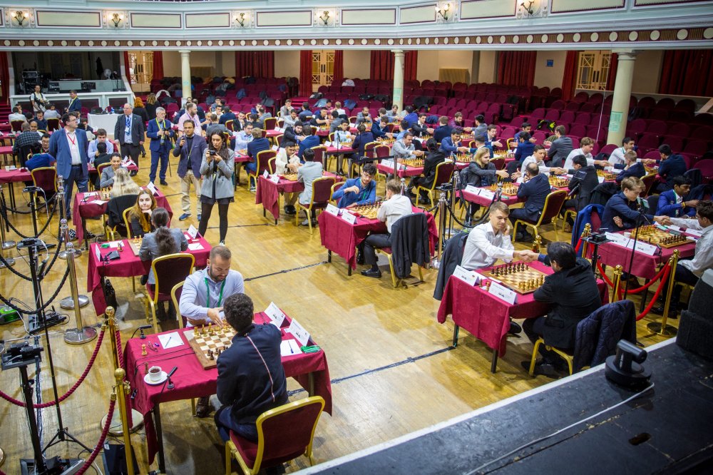 26.10.2023 – Das Grand Swiss 2023 ist vielleicht das stärkste Turnier im Schweizer System der Geschichte. Topfavorit Caruana startete mit einem Sieg, aber viele Top-Spieler mussten sich mit einem Remis zufrieden geben, weil die Gegner ebenfalls stark waren. Die deutschen Spieler hatten eine Auftaktrunde mit Licht und Schatten | Fotos: Anna Shtourman /FIDE